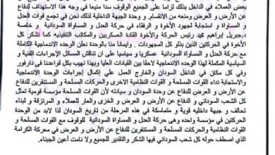 بيان من حركة العدل والمساواة حول هذا الحدث المهم